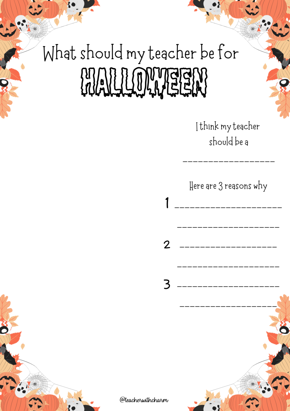 This fun interactive resource will have your students using their creativity and English vocabulary to decide what their teacher should dress up as for Halloween! 🎭🕸
